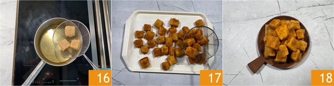Chauffez l'huile végétale à 180° et faites frire quelques pièces à la fois pendant 1-2 minutes ou jusqu'à ce qu'elles soient dorées 16. Égouttez au fur et à mesure sur du papier absorbant et poursuivez avec toutes les autres 17. Votre crème frite est prête à être servie 18 !
