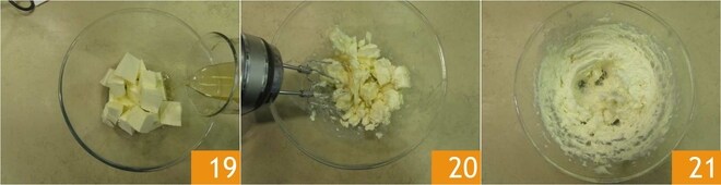 et le miel 19, et fouettez avec un batteur électrique 20 jusqu'à obtenir une crème homogène et sans grumeaux 21.