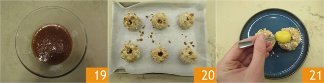 Mélangez et réservez pour refroidir 19. Sortez les pommes cuites 20 et disposez-les sur un plat de service, remplissez-les de sabayon 21.