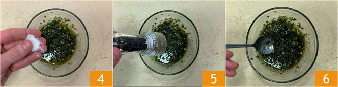 Assaisonnez avec du sel 4 et du poivre 5 et mélangez 6.