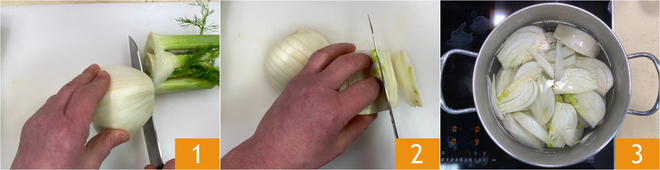 Pour préparer les fenouils gratinés à la méditerranéenne, commencez par nettoyer les fenouils 1 et coupez-les en tranches assez épaisses 2. Blanchissez les fenouils dans de l'eau salée pendant 5 minutes 3.