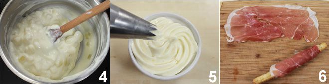 Ajoutez également la crème fraîche et remuez continuellement pour faire fondre le fromage 4. Lorsque le fromage sera complètement fondu et que vous aurez obtenu une crème homogène, rectifiez l'assaisonnement avec du sel et du poivre et conservez la crème au chaud, en la mettant dans des ramequins en céramique pour la servir 5. Enroulez autour de chaque ficelle aux olives une tranche de jambon cru de Sauris 6 et servez ces délicieux amuse-bouches accompagnés de la crème de Montasio !