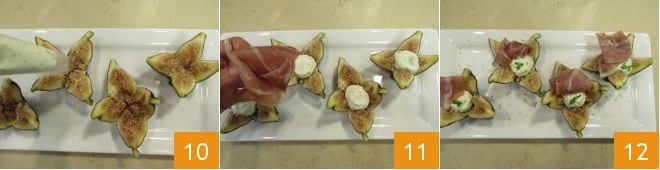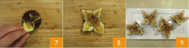 et ouvrez-les délicatement comme si c'étaient les pétales d'une fleur (7-8). Disposez les figues sur un plat de service 9,