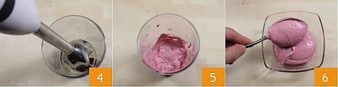Plongez le mixeur plongeant dans le verre 5 et mixez les ingrédients à vitesse moyenne jusqu'à ce que le mélange épaississe 5 ; cela prendra quelques secondes. Transférez la fausse mayonnaise avec betterave dans un petit bol 6 et voilà votre sauce prête !