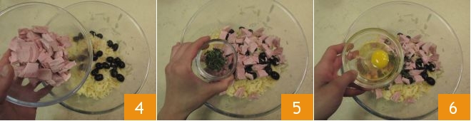 le thon égoutté 4, les petites feuilles de thym 5, l'œuf entier 6,