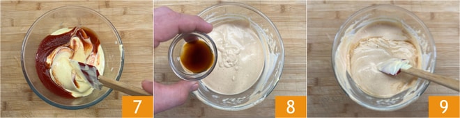 Mélangez 7. Ajoutez la sauce Worcestershire 8 et mélangez à nouveau jusqu'à obtenir la sauce cocktail 9. Mettez de côté.