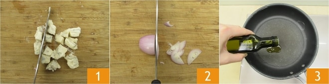 Pour préparer les garganelli asperges et gorgonzola, coupez le gorgonzola en dés et laissez-le à température ambiante 1. Nettoyez et émincez l'échalote 2. Faites chauffer un filet d'huile dans une poêle 3.