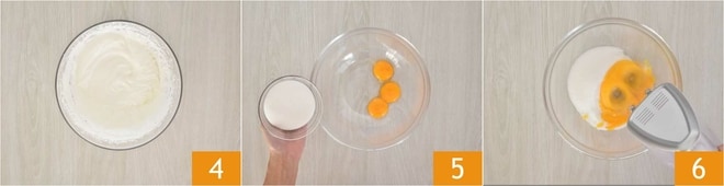 Les blancs doivent être blancs et mousseux 4. Versez les jaunes avec le reste du sucre dans un bol 4 et montez-les avec les fouets 6.