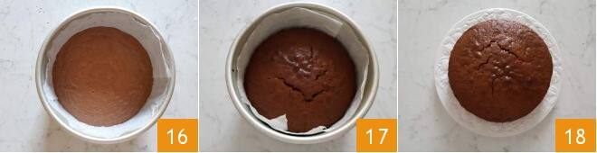 versez le mélange dans un moule de 22 cm tapissé de papier sulfurisé 16. Faites cuire dans un four statique préchauffé à 180° pendant environ 40 minutes, en faisant toujours le test du cure-dent avant de sortir le gâteau 17. Laissez refroidir complètement dans le moule votre gâteau aux blancs d'œufs et cacao avant de le transférer sur une assiette 18 et de le déguster.