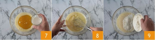 et le lait 7. Mélangez encore 8 avant d'incorporer la farine 9.