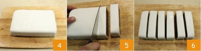 afin d'éliminer les parties en excès 4, puis coupez 6 tranches d'une épaisseur de 4,5 cm (5-6). Avec nos doses, vous devriez obtenir 12 tranches au total