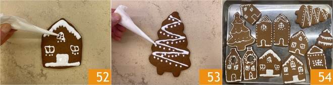 Transférez le glaçage royal dans un cornet en papier sulfurisé et décorez les biscuits à votre guise 52 53. Laissez sécher les biscuits décorés à température ambiante pendant au moins une heure 54.