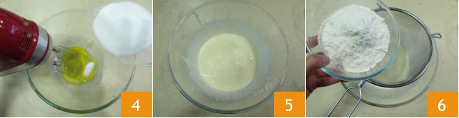 Faites fondre le beurre à feu très doux et laissez tiédir. Versez les œufs dans un grand bol et commencez à les battre avec un batteur électrique en ajoutant le sucre petit à petit 4. Vous devez obtenir un mélange clair et mousseux 5. À ce stade, tamisez directement à l'intérieur la farine 6,