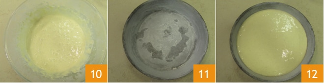 Travaillez encore avec les fouets jusqu'à obtenir une pâte lisse et homogène 10. Graissez avec de l'huile de graines et farinez un moule de 22 centimètres de diamètre 11. Versez-y la pâte 12 et faites cuire au four préchauffé à 180° pendant environ 40 minutes.