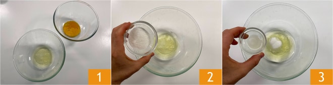 Ajoutez également le sel 4 et fouettez 5 jusqu'à obtenir un mélange mousseux 6. Placez-le au réfrigérateur.