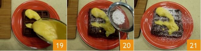 versez sur les gaufres la crème à la mandarine désormais froide 19 et terminez avec une saupoudrée de sucre glace 20 : vos gaufres avec crème à la mandarine sont prêtes à être servies bien chaudes 21 !