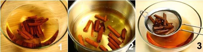 La première opération à faire pour préparer la gelée de cannelle est de laisser macérer pendant une nuit entière les bâtons de cannelle dans un demi-litre d'eau 1, afin qu'ils libèrent tout leur arôme dans le liquide. Le lendemain, faites-les bouillir dans l'eau 2 et laissez-les reposer toute la journée, puis filtrez la cannelle et gardez l'eau de côté.