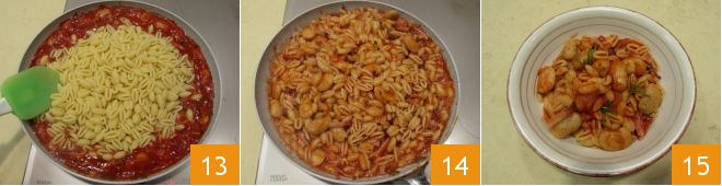 et versez-les directement dans la poêle avec la sauce 13. Mélangez bien les pâtes pour incorporer tous les ingrédients 14. Les gnocchetti sardi à la paysanne sont prêts : servez-les chauds avec quelques pointes de romarin frais comme touche finale 15.