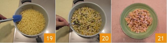 Versez les pâtes dans la casserole avec la sauce, de cette façon elles absorberont la saveur de l'assaisonnement 19, mélangez et ajoutez les pistaches grillées 20. Les gnocchetti sardi avec espadon et pistaches sont prêts, il ne vous reste plus qu'à les servir dans les assiettes et à déguster bien chauds 21 !