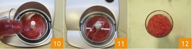 Versez le mélange dans une sorbetière 10 et actionnez-la pendant 30 minutes 11. Après les 30 minutes, votre granité de pastèque, fraises des bois et vodka est prêt à être dégusté 12 !