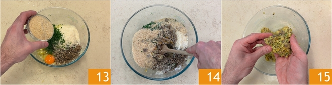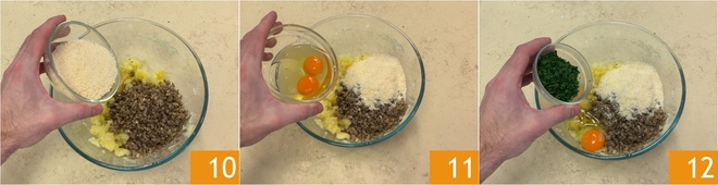 Ajoutez également le fromage râpé 10, les œufs 11 et du persil haché 12.