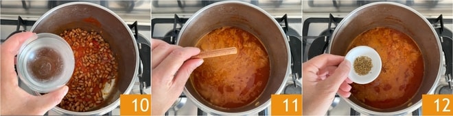 Couvrez les haricots avec de l'eau 10, puis ajoutez le bâton de cannelle 11 et le cumin 12.