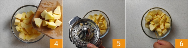 Rassemblez les pommes dans un bol 4, ajoutez le jus de citron 5 et mettez de côté 6