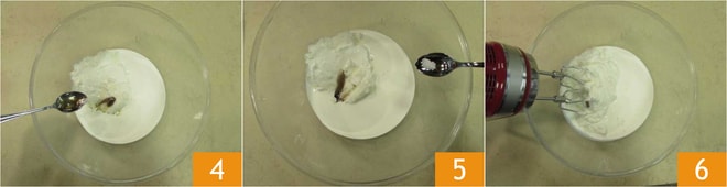 l'extrait de vanille 4 et le sel 5. Avec les fouets électriques, travaillez les ingrédients pendant environ 2 minutes 6.