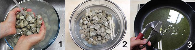 Lorsque l'ail est prêt, ajoutez les vongoles 4 et couvrez-les avec un couvercle pour les laisser s'ouvrir (cela prendra quelques minutes) 5. Pendant ce temps, portez à ébullition une casserole d'eau salée et mettez-y à cuire les bavettes, puis égouttez-les al dente 6.