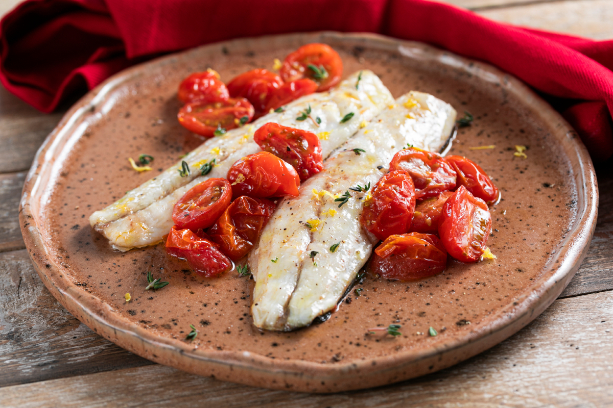 Pour l'accompagner, on prévoit des tomates datterino. Petites, sucrées et intenses, elles se transforment à la cuisson en un accompagnement juteux et aromatique. Leur équilibre entre acidité et sucre muscovado crée un contraste parfait avec la délicatesse du poisson, apportant une note vive et méditerranéenne au plat.