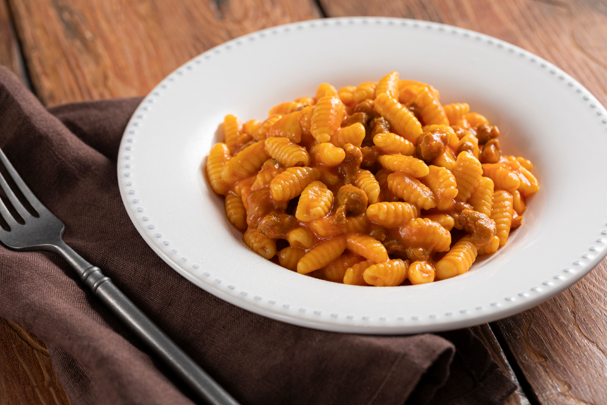 Les malloreddus à la campidanese sont un plat principal typique de la cuisine sarde, qui allie la tradition des pâtes fraîches à une sauce riche et savoureuse. Ces gnocchetti sardes, faits avec de la semoule de blé dur, sont de petites pépites en forme de coquillage, avec des stries qui les rendent parfaites pour retenir la sauce. La préparation des Malloreddus est un art : on mélange semoule et eau, créant une pâte lisse qui est travaillée à la main pour former de petites bandelettes de pâte. Ensuite, on les coupe en petits morceaux et on les passe sur un rigagnocchi pour obtenir la forme caractéristique. La sauce à la campidanese est tout aussi essentielle : la saucisse émiettée est rissolée avec de l'oignon, de la tomate et une pincée de safran, créant un assaisonnement riche et aromatique. Pour compléter les malloreddus à la campidanese, enfin, on ne peut pas oublier une pincée de pecorino sardo, qui ajoute de la crémeux et un goût prononcé. Un plat rustique et savoureux, qui apporte avec lui les saveurs authentiques de la Sardaigne.