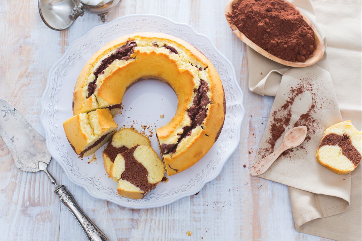 On dit que pour toucher le cœur, le chemin le plus facile passe par l'estomac... Pour le dire simplement, préparer quelque chose de spécial pour ceux que nous aimons est encore une des activités les plus douces et satisfaisantes ! Aujourd'hui, nous vous proposons une variante du traditionnel et intemporel Gâteau de grand-mère, le gâteau marbré bicolore. Un Gâteau bicolore qui cache justement dans sa simplicité une bonté irrésistible : vanille et cacao se fondent ensemble pour créer une harmonie de grand effet ! Tranche après tranche, vous découvrirez comment ils se mêlent dans la pâte de ce gâteau moelleux et parfumé. Trempez-le dans du lait au petit-déjeuner, tranchez-le pour un goûter sucré ou partagez-le avec vos amis et collègues de travail. Avec le Gâteau au chocolat, celui Gâteau à l'eau et au Gâteau au cacao avec cœur de noix de coco, il deviendra un de vos chevaux de bataille !