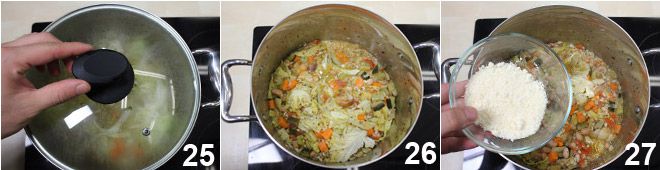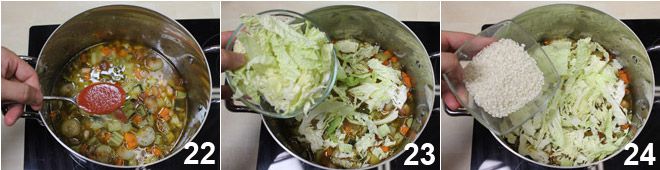Après ce temps, ajoutez la sauce tomate 22, le chou 23 et le riz 24.