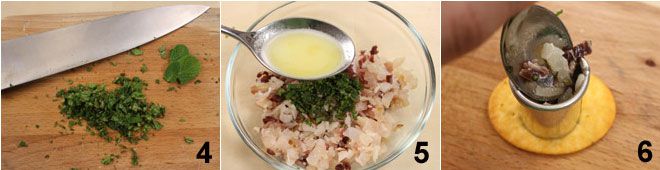 Hachez les feuilles de menthe et ajoutez-les à l'espadon. Arrosez le tartare avec la citronnette et mélangez bien. Vous pouvez maintenant composer vos amuse-bouches : prenez un petit emporte-pièce ou un moule rond pour biscuits d'environ 3 cm de diamètre, placez-le au centre de la galette et versez le tartare en pressant avec une cuillère pour qu'il se compacte bien en gardant sa forme. Retirez délicatement le moule et vous obtiendrez les mini-tartares. Garnissez avec de petites feuilles de menthe et servez.