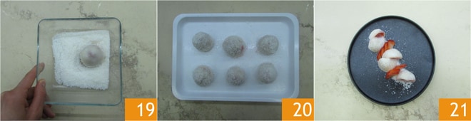 Enrobez-les ensuite de noix de coco râpée 1920. Les mochi sont prêts à être dégustés 21.