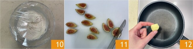 Couvrez le bol avec un film plastique et laissez raffermir au réfrigérateur pendant 30 minutes 10. Pendant ce temps, coupez les figues en 4 quartiers, sans les éplucher 11. Faites fondre le beurre dans une poêle antiadhésive 12.