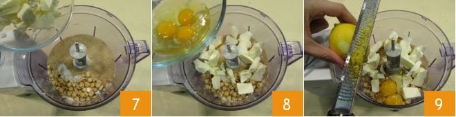 Ajoutez enfin le beurre en morceaux 7, les 3 œufs 8 et le zeste râpé d'un citron 9 en ne prenant que la partie jaune.