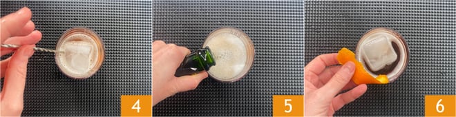Mélangez rapidement avec une cuillère à bar, avec des mouvements de bas en haut 4. Versez l'autre partie de prosecco jusqu'à ce que la mousse atteigne le bord du verre 5. Passez un zeste d'orange sur le bord du verre 6 puis plongez-le dans le cocktail comme garniture. Votre Negroni à la mode est prêt à être dégusté !