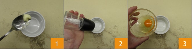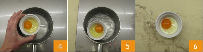 Pour préparer les œufs cocotte, commencez par beurrer une cocotte de 9 cm de diamètre 1. Salez 2 et versez les œufs à température ambiante, un à la fois, que vous aurez préalablement cassés dans un bol ou une petite assiette 3.