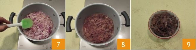 Faites cuire pendant environ une heure à feu modéré 7, en mélangeant de temps en temps avec délicatesse pour ne pas casser les oignons. Une fois la cuisson terminée, vérifiez la température avec un thermomètre de cuisine, elle devra atteindre 108°; le mélange sera assombri et le liquide presque totalement évaporé 8. Vos oignons de Tropea caramélisés sont prêts, placez-les dans un bol et dégustez-les pour accompagner viandes ou sur des croûtons croustillants 9!