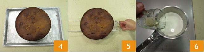 Faites un test avec un cure-dent en fin de cuisson ou mesurez la température interne avec un thermomètre de cuisine : elle doit être comprise entre 92-98°. Dès que le panettone est cuit, sortez-le du four 4. Piquez-le à l'aide de deux longues brochettes 5. Laissez-le refroidir en le retournant à l'envers pendant au moins 5 heures. Utilisez deux bols hauts ou deux casseroles pour que le panettone reste soulevé. Lorsque environ 3 heures de repos se sont écoulées, préparez la ganache. Hachez le chocolat noir et mettez-le dans un bol. Dans une casserole, versez la crème, ajoutez le miel 6 et chauffez jusqu'à frémissement.