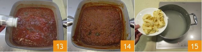 Salez 13, poivrez et laissez cuire à couvert pendant environ 3 heures et demie à feu doux, puis retirez le couvercle et laissez réduire le ragoût encore 30 minutes 14. Faites cuire vos pappardelle dans une abondante eau bouillante, salée à votre goût 15.