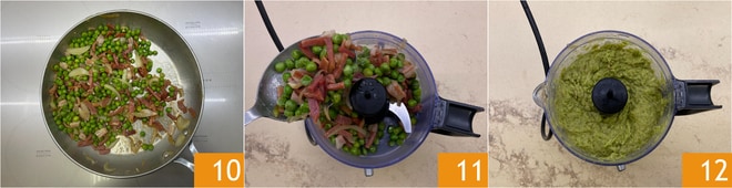 Une fois prêt, laissez refroidir complètement 10. Transférez le tout dans un mixeur 11 et mixez jusqu'à obtenir un mélange homogène 12, mettez-le dans une poche à douille.