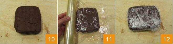 Pétrissez jusqu'à obtenir une pâte souple, à ce stade formez une boule 10, enveloppez-la dans du film alimentaire (11-12). Laissez reposer la pâte au réfrigérateur au moins une demi-heure avant de l'utiliser pour réaliser des biscuits ou des tartes.