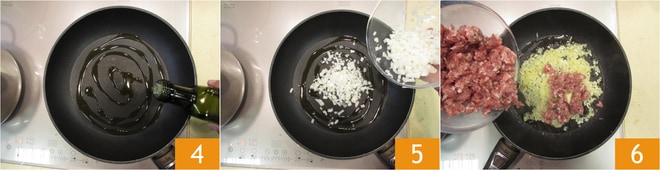 Versez un filet d'huile dans une poêle 4, ajoutez l'oignon haché 5, l'ail et laissez revenir à feu moyen pendant environ 5 minutes. Ajoutez à l'oignon la saucisse émiettée 6 et faites cuire à feu modéré pendant encore 5 minutes, jusqu'à ce qu'elle soit bien dorée. Pendant ce temps, placez une casserole pleine d'eau sur le feu et salez à ébullition, cela servira à cuire les pâtes.