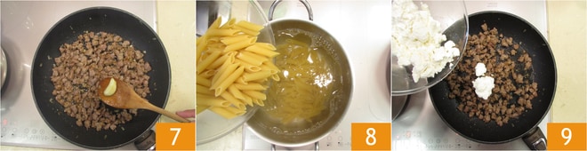 Retirez l'ail et éteignez le feu 7. Faites cuire les pâtes al dente 8. Versez dans la poêle la ricotta de brebis 9.