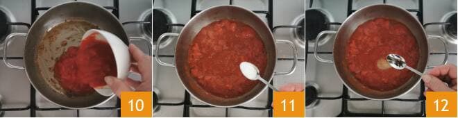 Versez la pulpe de tomate 10, ajoutez une cuillère à café de sel 11 et les clous de girofle hachés 12.