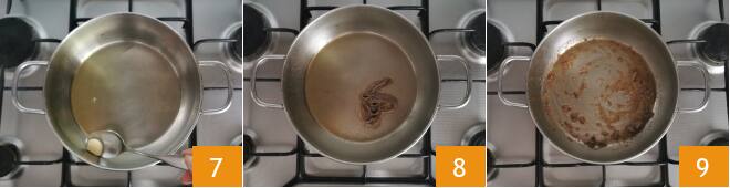 Retirez l'ail 7 et ajoutez les anchois égouttés 8. Chauffez à feu modéré en mélangeant, jusqu'à ce qu'ils soient fondus 9.