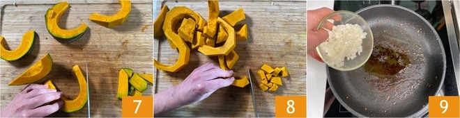 Vous pouvez ajouter un piment haché avec l'oignon pour la cuisson du potiron.