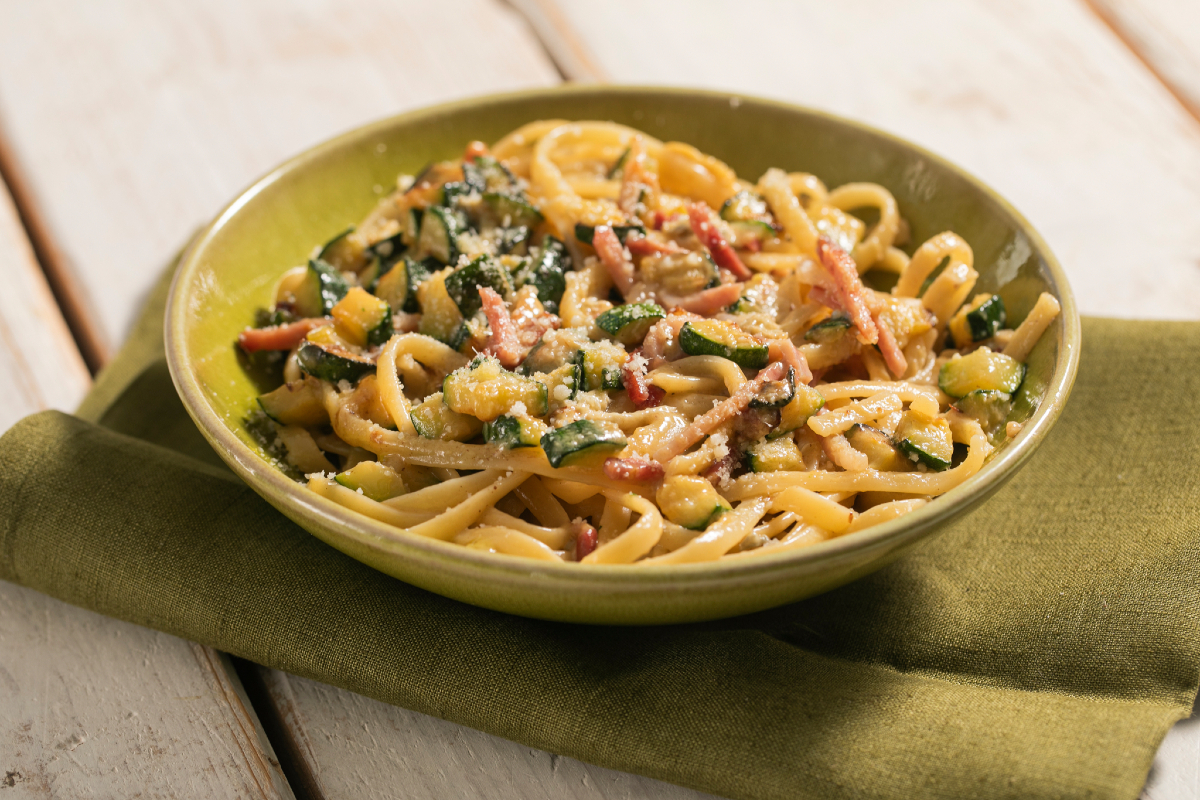 Après avoir goûté les pâtes aux courgettes, speck et gorgonzola, essayez aussi ces variantes :